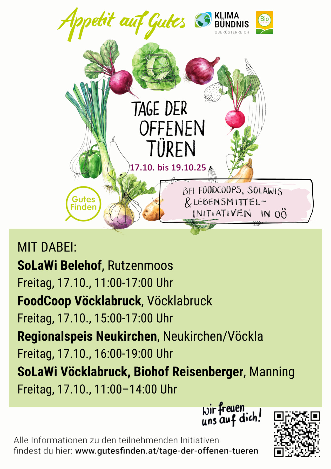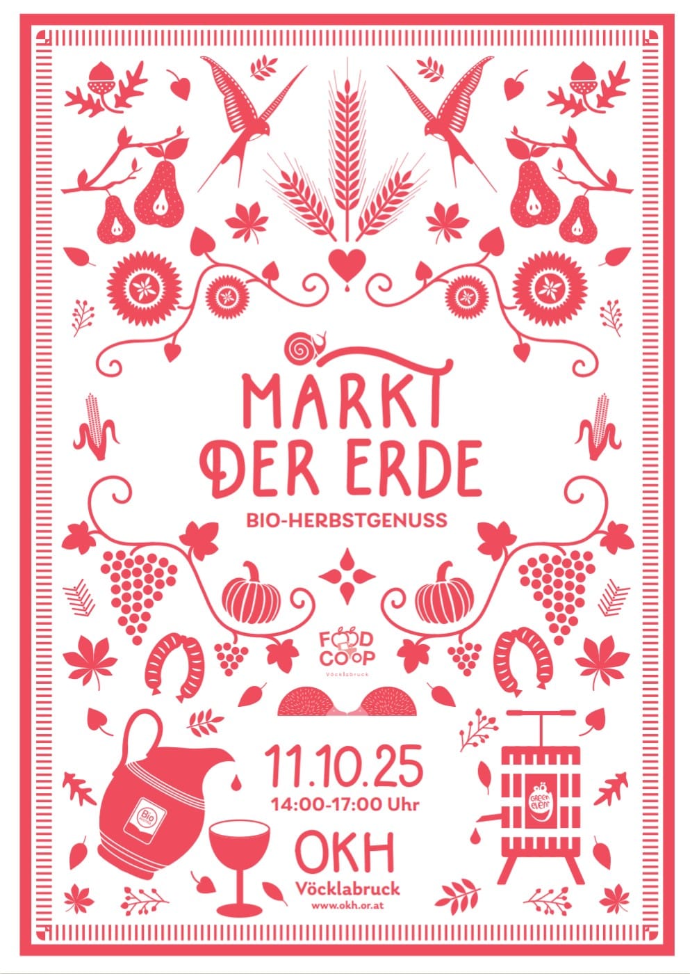 Am Markt der Erde am 11. Oktober ab 14 Uhr im OKH Vöcklabruck könnt ihr uns und andere regionale Produzent*innen kennenlernen und unsere Produkte erwerben und genießen!